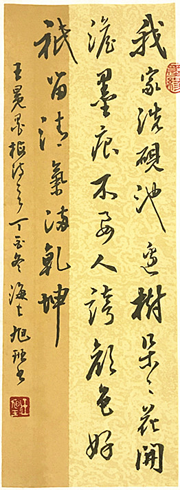 王旭班 曾多年从事部队文化工作,任某部文工团团长、书画协会会长等职。现供职上海市某政府机关从事党建和文化工作。琴棋书画数十年研习不辍,书法、诗词与文艺作品屡获全国大赛最高奖,作品及传略入选多部作品集,并多有媒体刊载。书法作品获“海内外中国书画大赛暨精品展”金奖、“中国硬笔书法协会全国第二届书法硬笔书法网络大赛”一等奖、“燕都金像奖”全国书法大赛金奖、 “庆祝中华人民共和国成立68周年国际硬笔书法作品展”金奖、“第九届祖国好华语文学艺术大赛”书法金奖、“秀和杯茉莉情”全国书画大赛唯一特等奖、“文艺强国第五届诗书画文艺大赛”最高奖等;诗词作品获“东方美全国诗联书画大赛”金奖、“感动中国全国诗词大赛”金奖、“出彩中国诗人全国诗词大赛”金奖、“第三届中华情全国诗歌联赛”金奖、“2017全国诗书画家创作年会”一等奖、“陶都杯宜兴紫砂全国诗词大赛”二百强等;文艺作品获国家文化部全国文艺“群星奖”优秀创作奖、总政治部全军“文艺奖”一等奖等。现为中国硬笔书法协会名誉理事、上海市书法家协会硬笔书法家联谊会理事、上海硬笔官网编委、中国诗书画家网艺术家委员会副主席、中华现代书画艺术家委员会理事、中国百家文化网高级书画师、中国书画等级考试硬笔书法高级培训师、中国散文学会会员、中国诗词学会会员、上海市诗词学会会员、中国百家文化网专栏作家等。