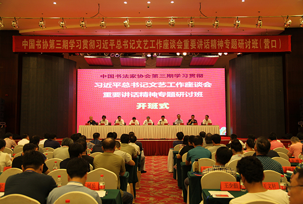 为贯彻落实中宣部、财政部、文化部、新闻出版广电总局、中国文联、中国作协联合印发《2016——2017年全国文艺骨干和管理干部培训工作规划》及中国文联统一部署,中国书协于8月16日至18日在营口举办第三期“中国书法家协会会员深入学习贯彻习近平总书记文艺工作座谈会重要讲话精神专题培训班”, 引导广大书法家和书法工作者深刻领会党中央关于文艺工作和文联工作的重要指示精神。