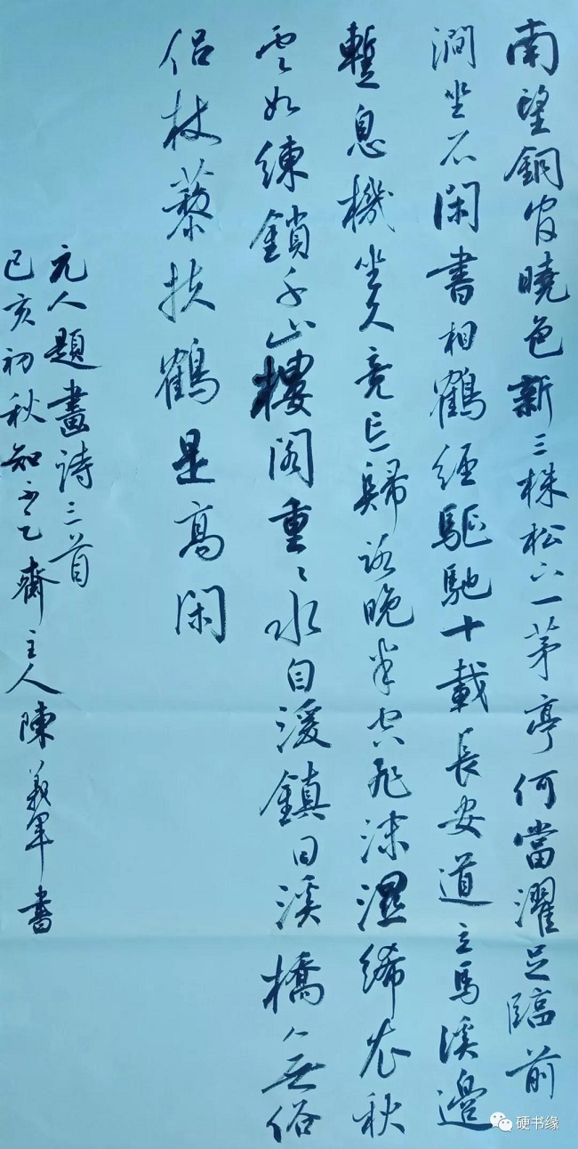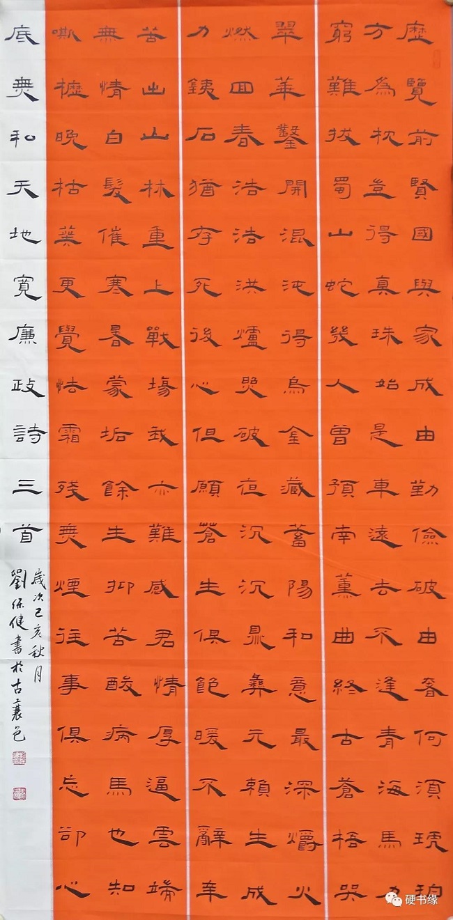 在普天同庆,举国欢腾时,“硬书缘”书法网络展的举办与展出,是我们书法人献给伟大祖国七十华诞的一束鲜花。